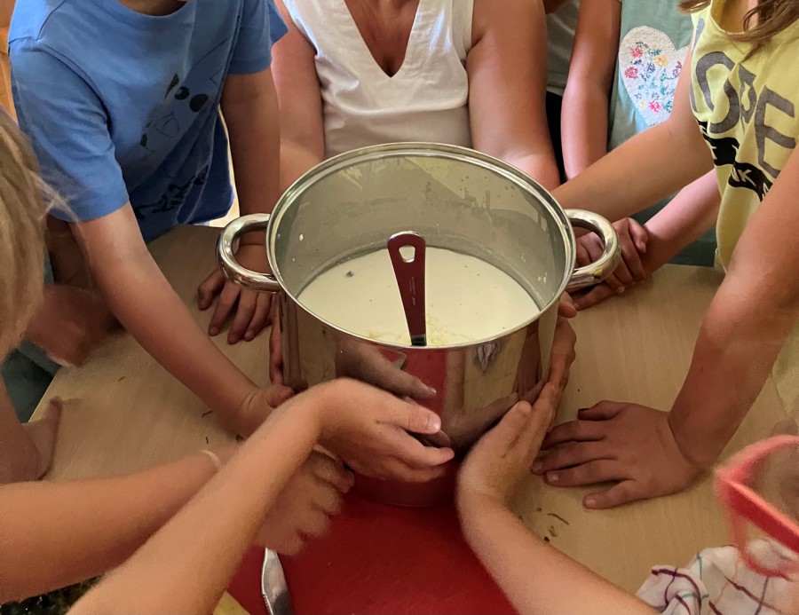 Wir stellen gemeinsam Weichkäse sowie Fruchtmolke aus Kuhmilch her, den wir mit selbst kreiertem Heilkräutersalz würzen und gemeinsam verkosten.
